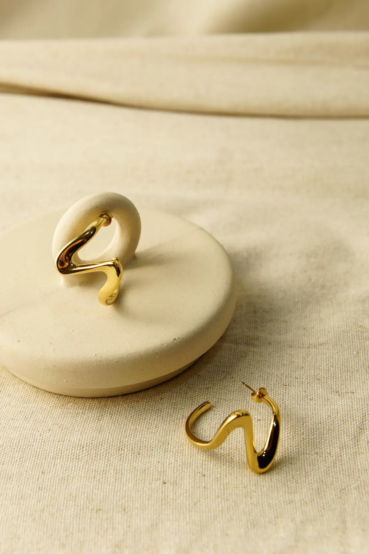 Sculptural waves that follow their own rhythm, each curve intentionally imperfect. The Gaia earrings bring an artful edge to your everyday—organic forms that feel both grounding and free.