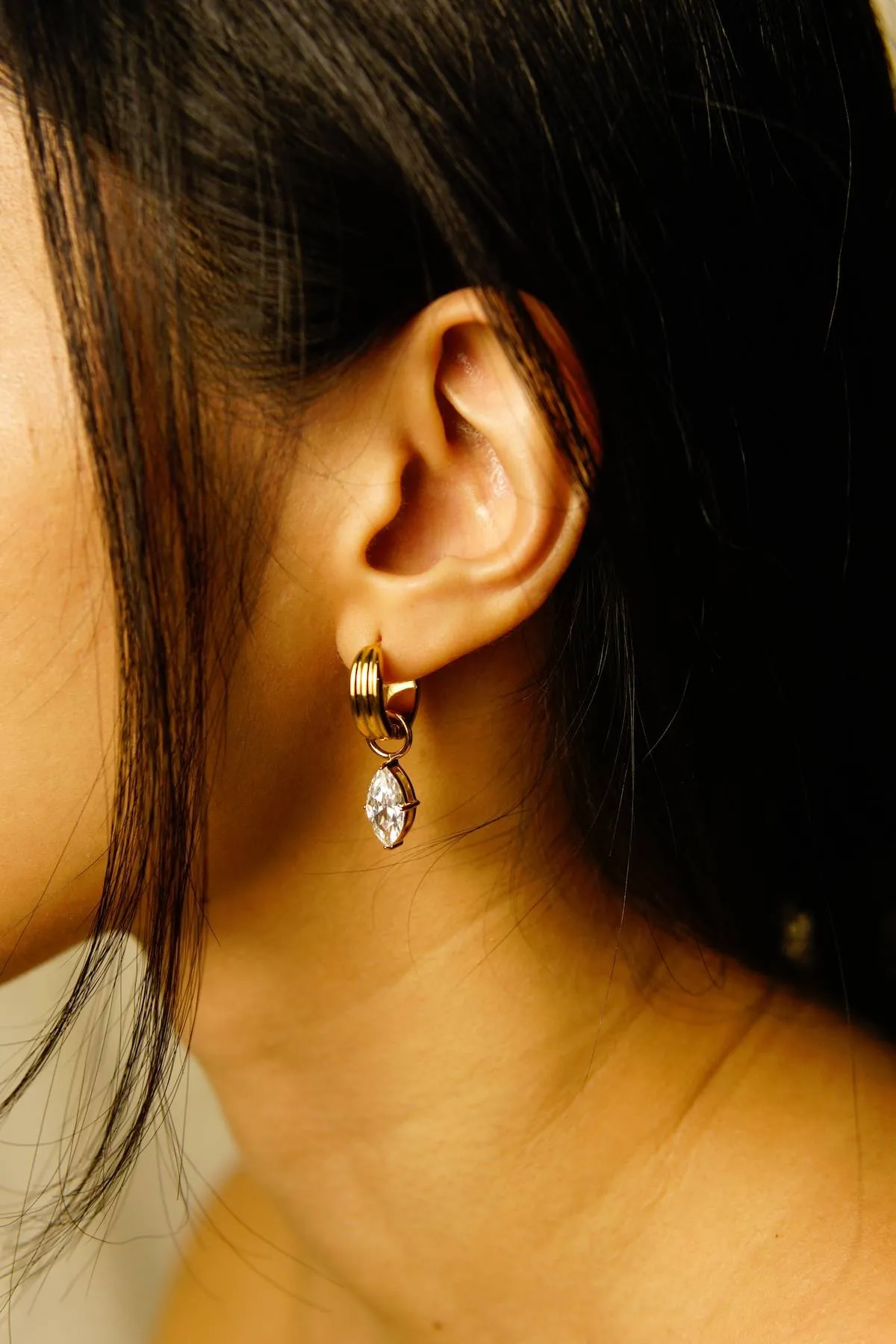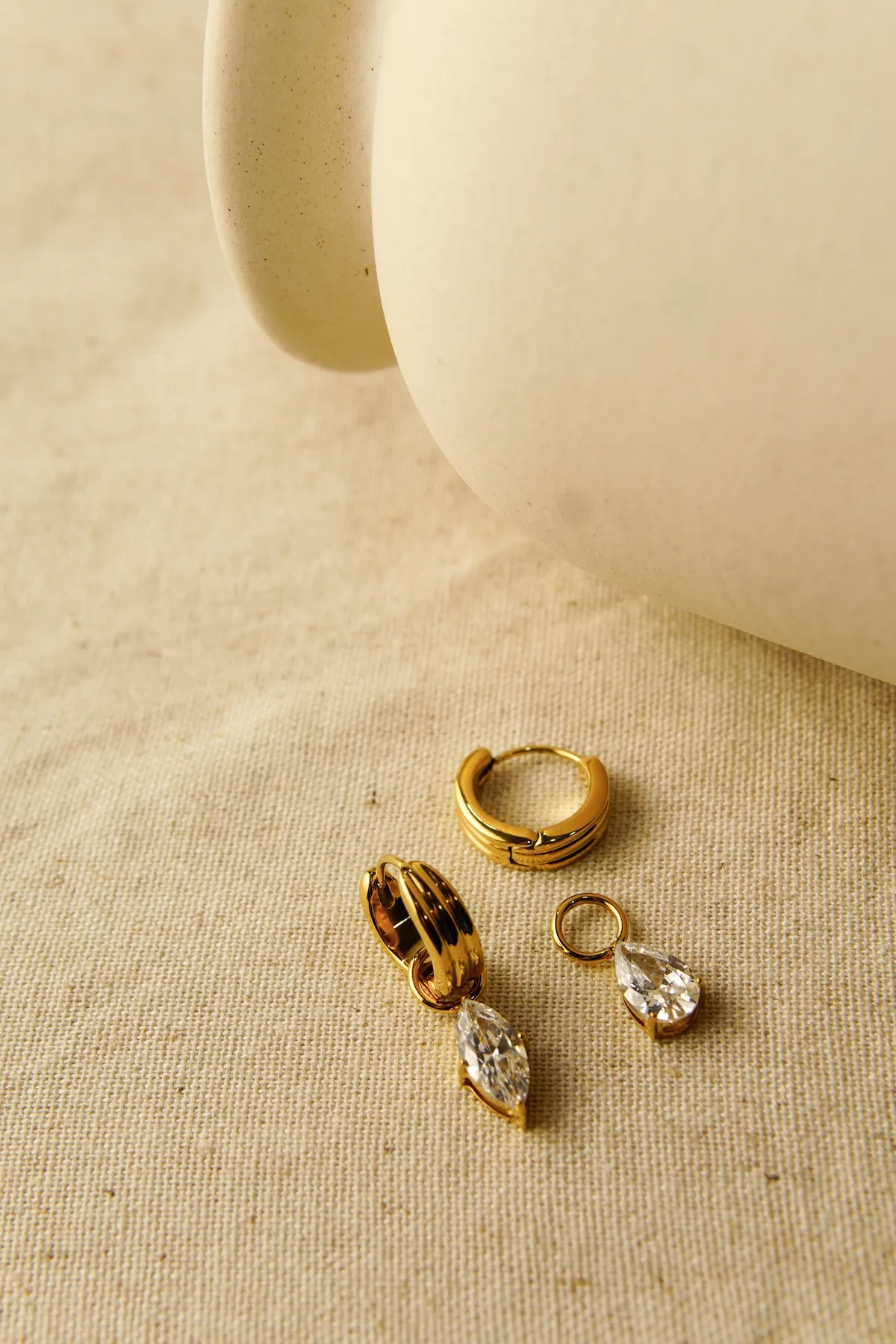 Delicate design, bold possibilities. The Selene earrings feature one teardrop charm and one pear-cut zircon, offering effortless versatility—wear them together for a striking contrast, or remove the charms for sleek, minimalist elegance. Two looks, one intentional choice.